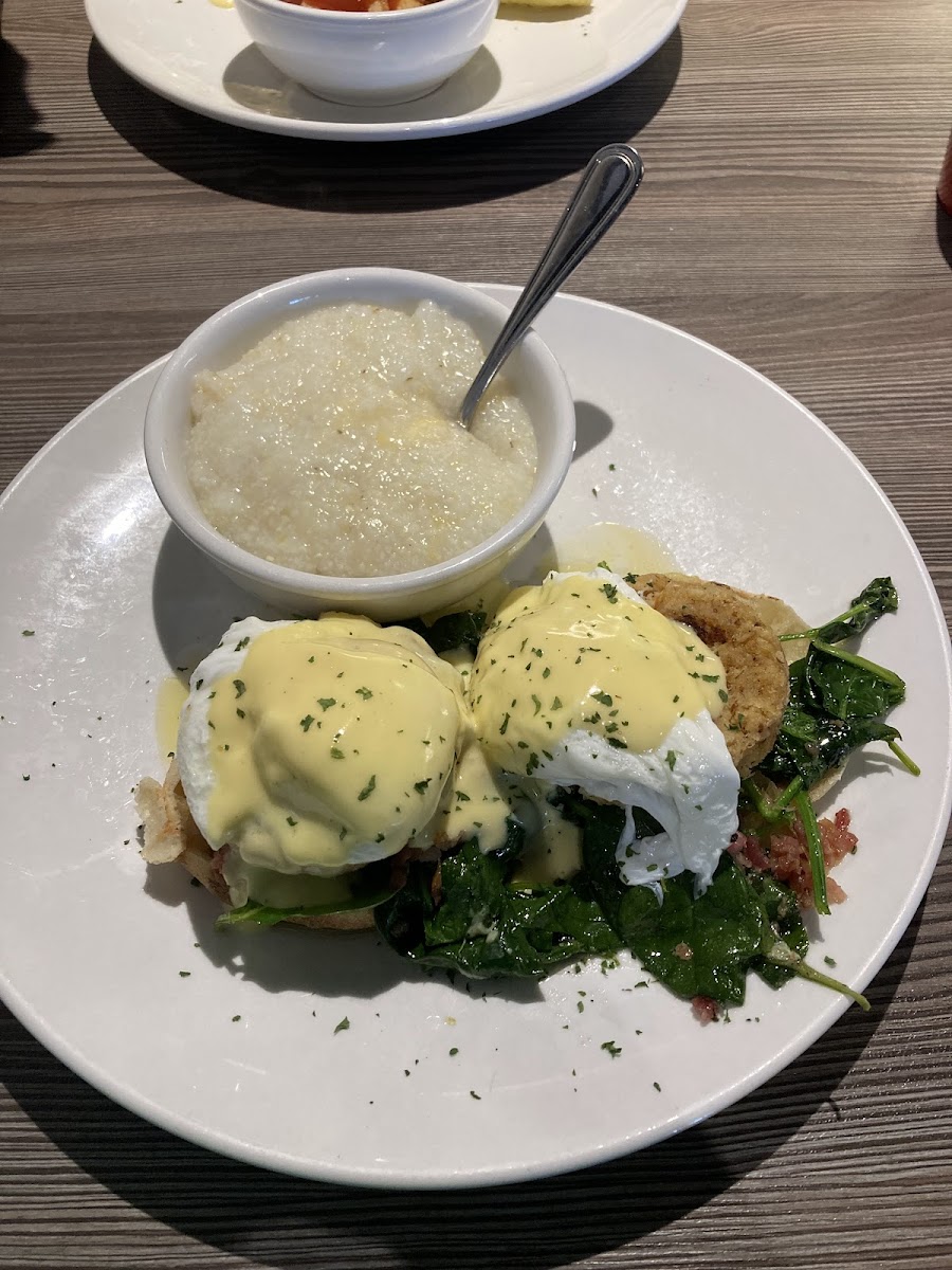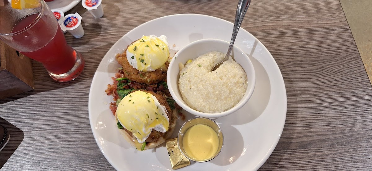 One of the standout dishes at Brick & Spoon is the breakfast fries, which come highly recommended by customers. The mini mimosas and the crab cake benedict are also popular choices. The menu boasts a good selection of items, with a variety of vegetarian and vegan options available. The grits are a standout feature, cooked to perfection and praised for their creaminess.