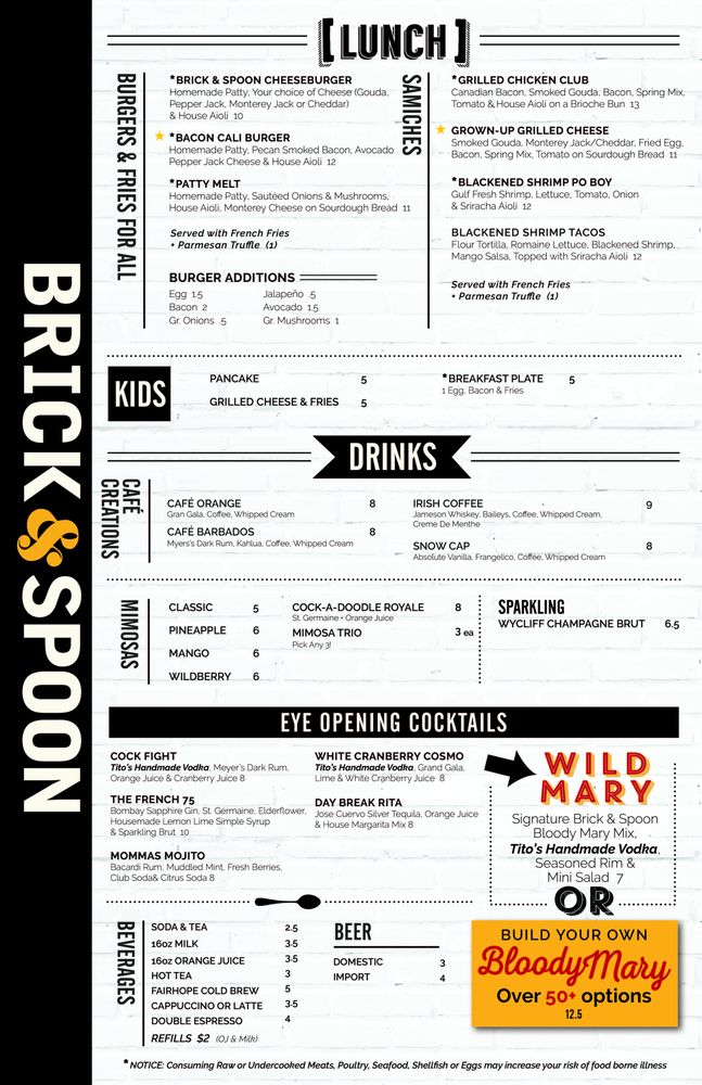 Brick & Spoon Menu